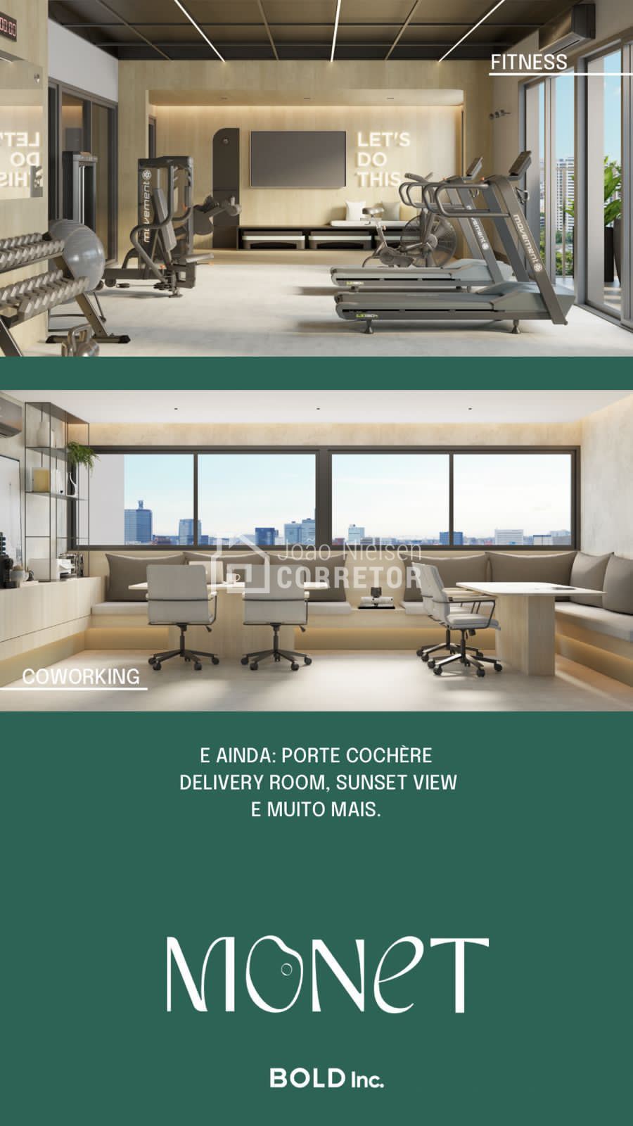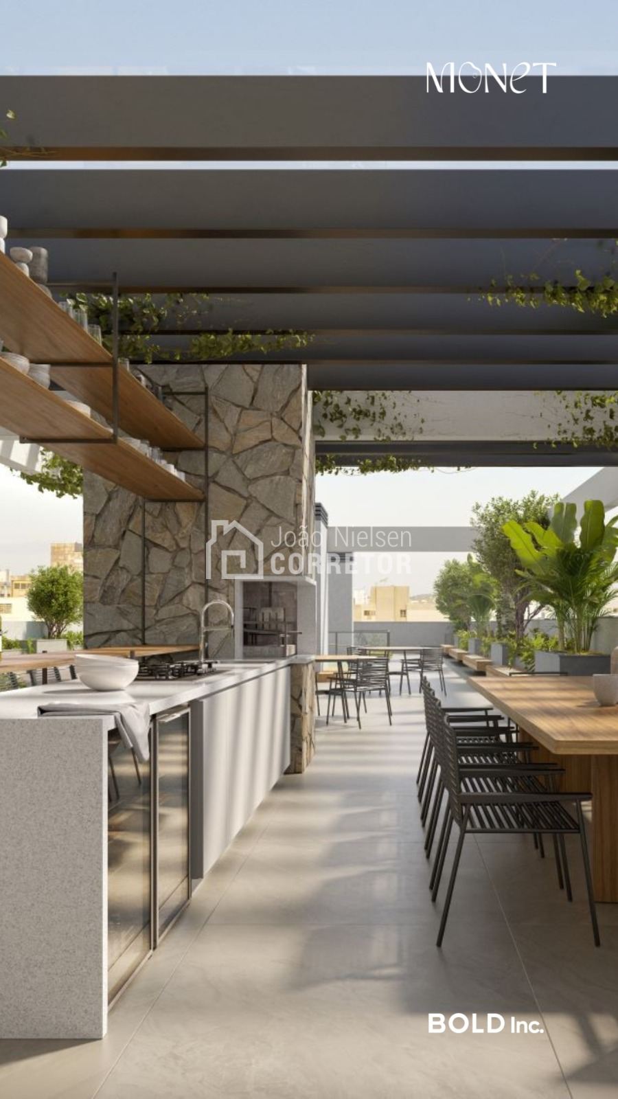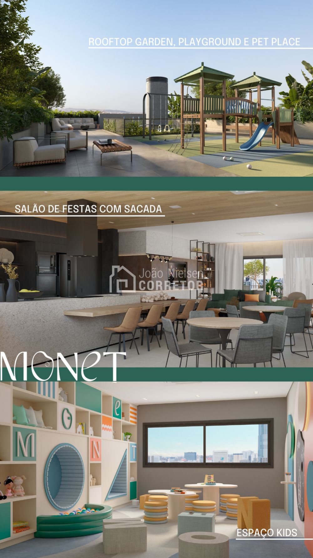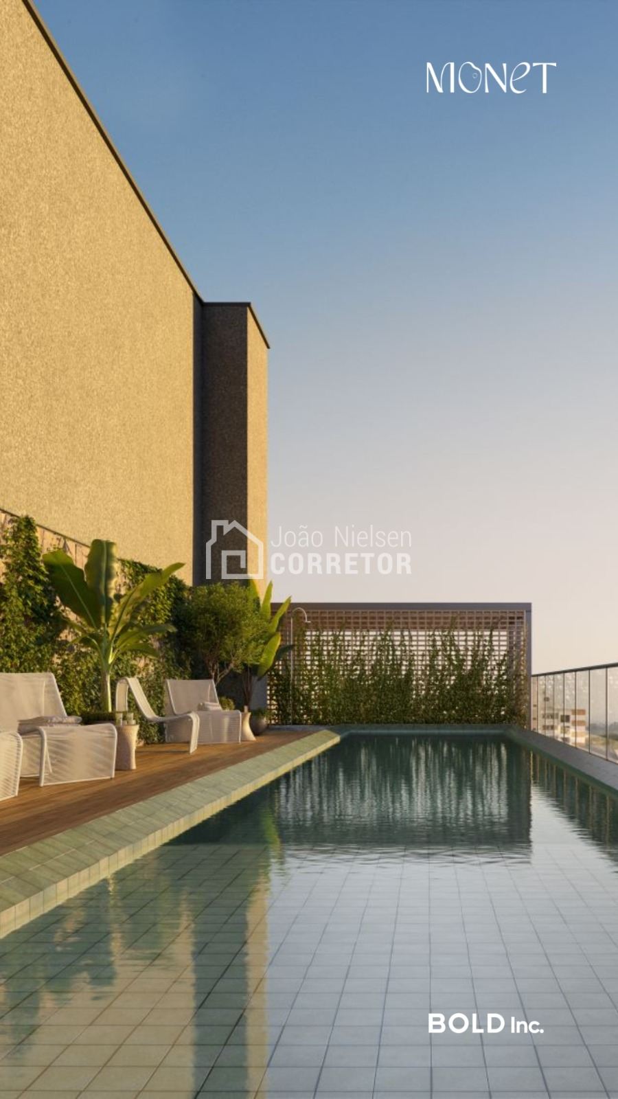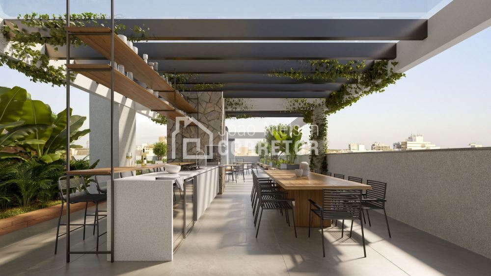 Infrestrutura no Rooftop | Vagas de visitantes | Port cochere | Pé direito duplo | Pulmão de acesso | Portaria 24 horas | Delivery Room | Foyer de acesso | Coworking integrado no térreo | Bike station | Mini market | Sunset view | Espaço kids | Playground | Salão de festas | Espaço gourmet | Rooftop garden | Pet place | piscina externa na cobertura | Fitness com sacada | Espaço zen | Coworking no rooftop